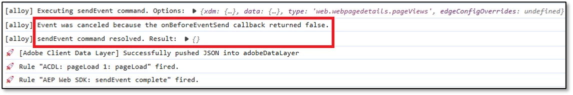 As mentioned in Part 1 of this blog series, the onBeforeEventSend property needs to "return false" in any cases where we want to prevent devices from sending out any AEP Web SDK server calls.