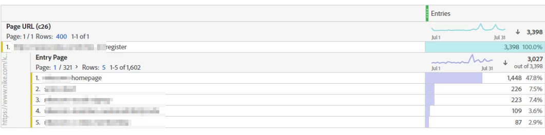 Now, when you breakdown your Page URL (c26) variable by Entry Page, you have to consider a user journey through your site. It could be something like this: