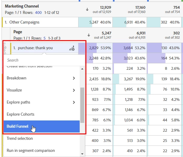 To help with that, I want to propose a new right-clicking action for dimension items and metrics in Freeform tables. When right-clicking one, show a new "Build Funnel" option: