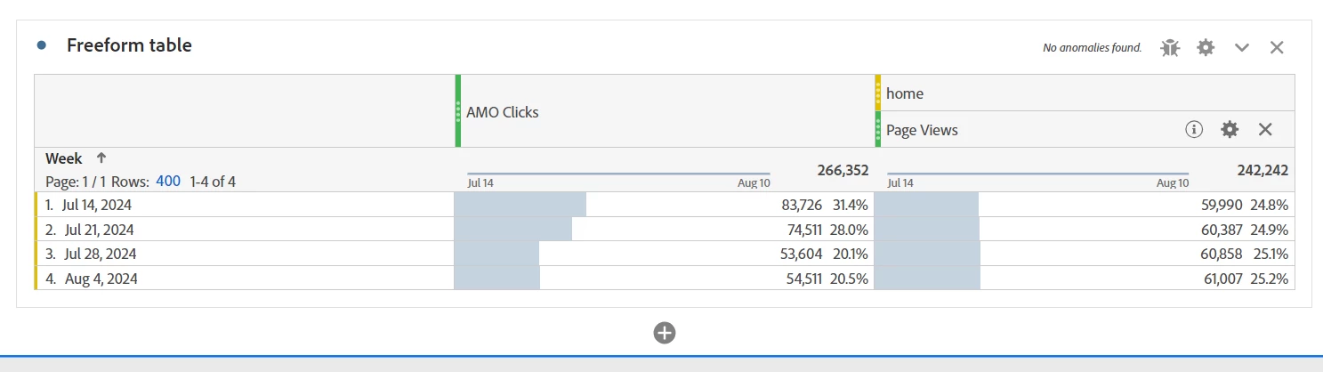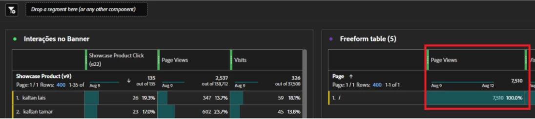 Is it possible to build that calculated metric considering the total page views that I outlined in red instead of the page views present in the 'Interações no Banner' table?