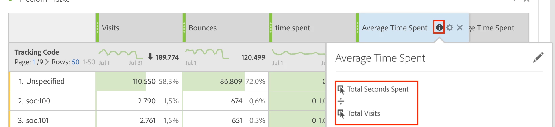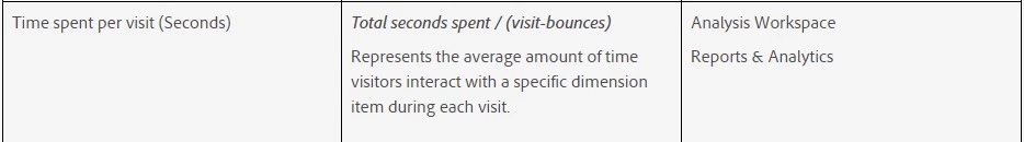 I would like to know how to calculate the metric "Time spent per visit (seconds)".