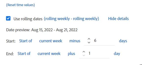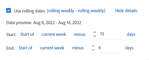 Have tried creating rolling dates but week dimension still shows start day / date value of week as starting on Sunday rather than required Monday date