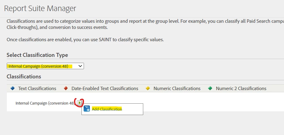 I choose to use the Classification rule builder for internal campaign id classification: