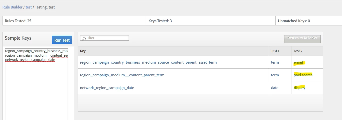 ^ Ignoring the fact that I dumped most of my rules into Test 1 instead of proper classifications (so I kept overwriting the values), you can see that my highlighted sample rows, populating Test 2 with "email" or "paid search" or "display" actually came out correctly based on looking for a specific number of parts, and having them process in the correct order...