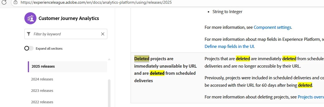 In AA projects can be accessed as long as you have the project ID to drop in the URL. This isn't the case with CJA. If a project is deleted, then it is completely inaccessible. Is there a workaround?