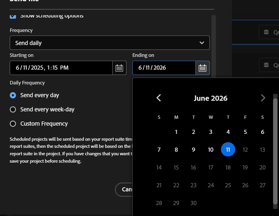 Adobe allows a maximum of 1 year for scheduled exports.