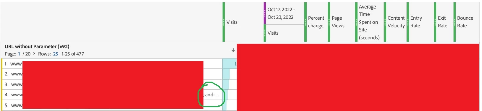 We create scheduled reports that email out PDF files to our stakeholders. However if the dimension contains a long URL, rather than word-wrapping it, it instead truncates it and adds "..." to the end. When the recipient clicks on one of the PDF's truncated links to confirm what it is, it then loads up a truncated URL 404 page, still with the "..." at the end (this is less of an issue when you are actually in Adobe Analytics of course as you can just hover over the dimension to see its full length)