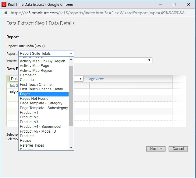 Change in Data Extract report under More option