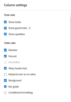When I prepare long dashboards for my customers i need to select each separate column on each form and then deselect anomalities and sometimes grand totals/percentages to avoid any misunderstanding on my reports.