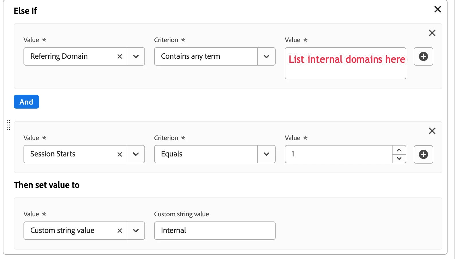 How do we mimic this rule in CJA derived field? I am getting stuck mainly with the "Is First page of visit" condition. This needs to be done with multiple other channel types.