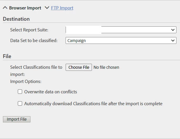 In your options, can you select the Report Suite and Data Set that you want to classify? See attached.