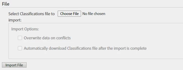 Classification import options