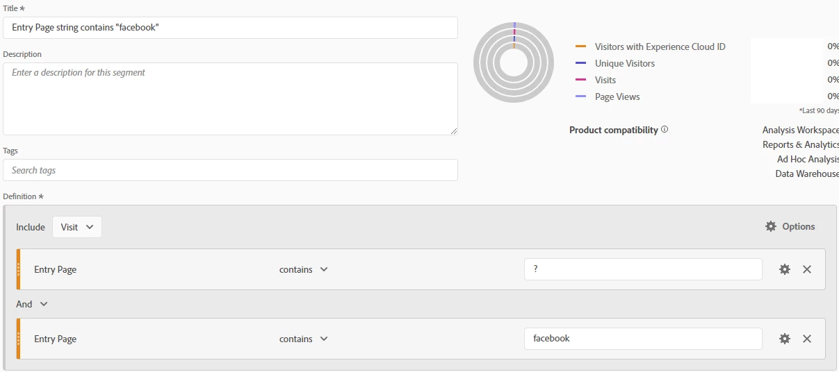 The drawback here is that you cannot combine segments and dimensions in the same table axis, so if you wanted to compare Page Names that included "Facebook" to pages that did not or pages that included other text, you'd need to create additional segments. You'd face a similar issue with the classification approach in that any variable value that doesn't meet the requirements for your Facebook RegEx will be labeled as "Unspecified" in the table.