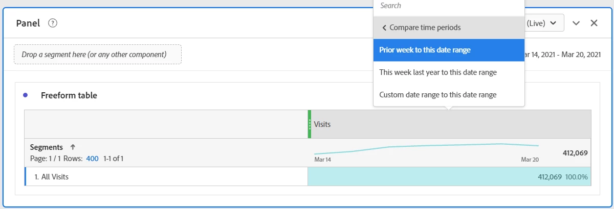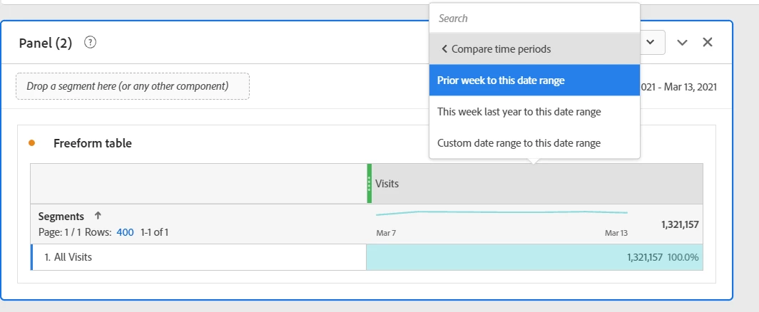 Looks like the recent changes to introduce times into the date range selection may have impacted the Compare Time Periods feature in Workspace when attempting to compare to the prior week. When selecting the "Prior Week to this date range" option, the resulting time period generated has an start date that is one day after the date range of the panel....and an end date that is one day before the generated end date (i.e., both dates are wrong and the compare end date occurs before the compare start date).