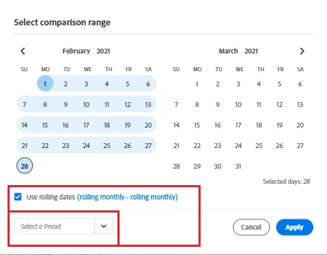 Unfortunately, I don't seem to be able to find the same level of flexibility in Workspace. Does anyone know if there's an option to avoid having to pre-define the comparison date range and keep it flexible so the user can use the same report for last week's data comparisons as well as last month's or any custom date ranges they may wish to review?
