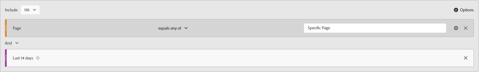 Create a segment that shows activity two weeks after they hit a page