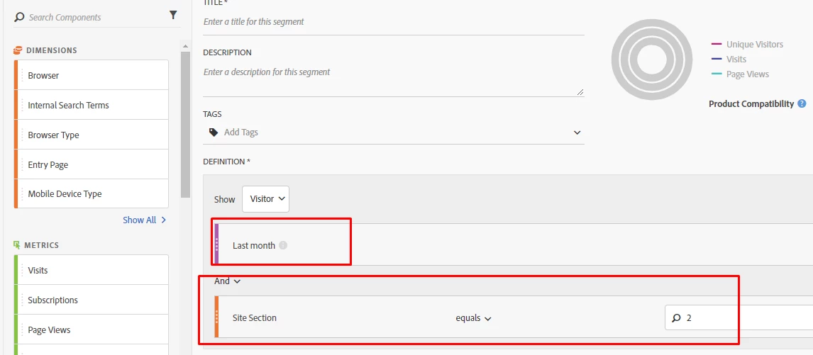 Anyone have suggestion on how to set a segment which inlcude visitors who visited to a section 2 time in last month?