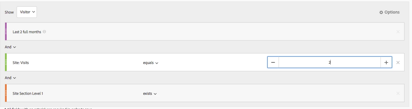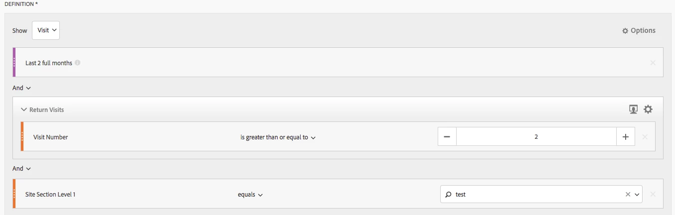 create segment capture who visited 2 times last month