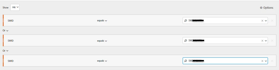 Is there not a way (as in Target) to use "contains" and separate by commas? Example: SWID Contains SW123,SW1234,SW456, etc.