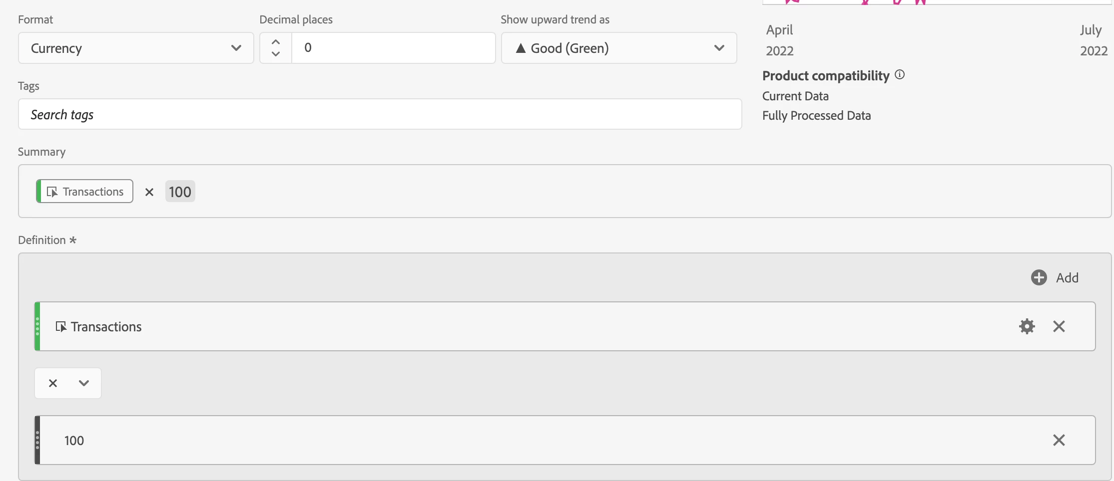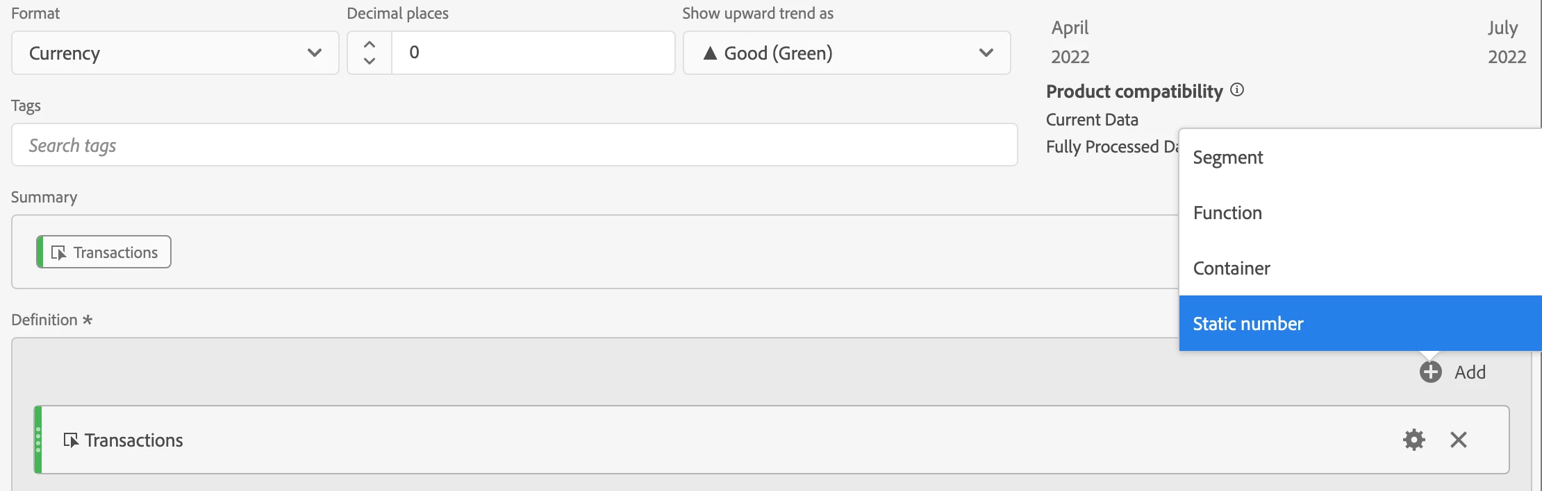 Creating a standalone number and adding to analytics as a segment to include in a calculated metric