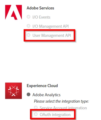 I would like to access Adobe Analytics (Experience Cloud) data and User Management API (Adobe Services) data via the v2.0 API.