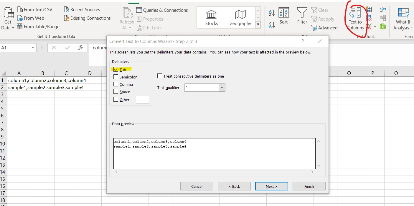 As you can see, in my Excel, "tab" is the current delimiter... so this isn't going to process a normal CSV properly: