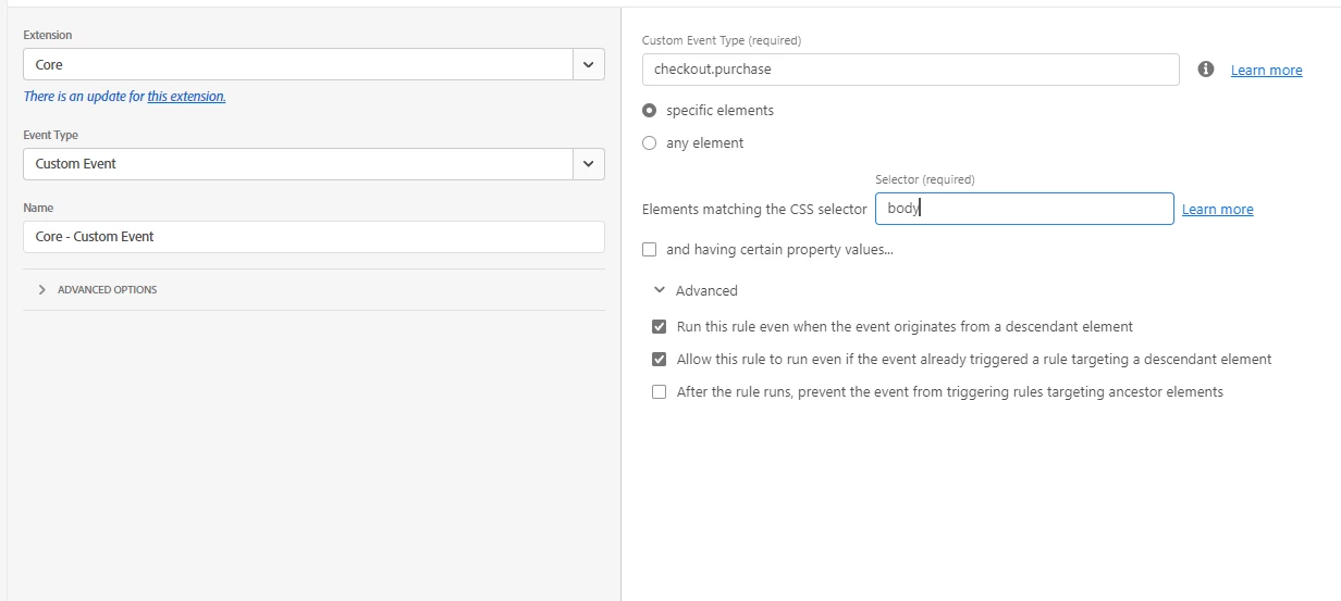 I am seeing majority of my purchase calls getting trigerred at www.abc.com/checkout?..&step=2 . I have checked with the backend team the custome event dispacthing looks solid. are there any precautions that should be taken while configuring the custom event? - below is the attached screenshot. I am including the eventObject.name