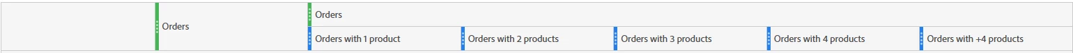 - I then also show a table that shows orders with 1 product, 2 products, etc..... with Product as a dimension. The first column is 'all' orders, then it breaks it down further