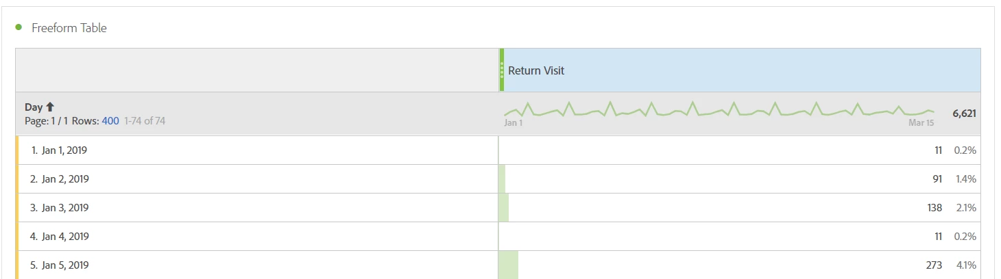Thanks for screen shots. If you compare the Adobe Daily return visits report with Workspace reports (Which you have shared with me- Freeform table), numbers are not matching. Any inputs here.