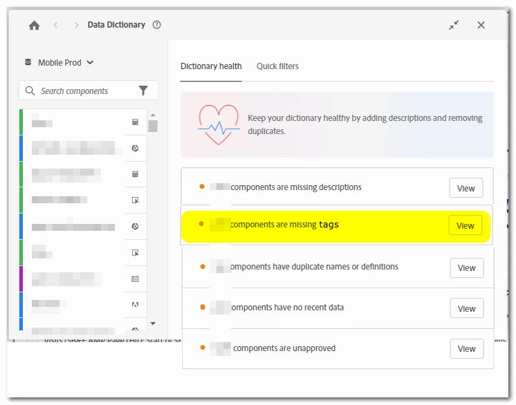 Data Dictionary - Components Missing Tags