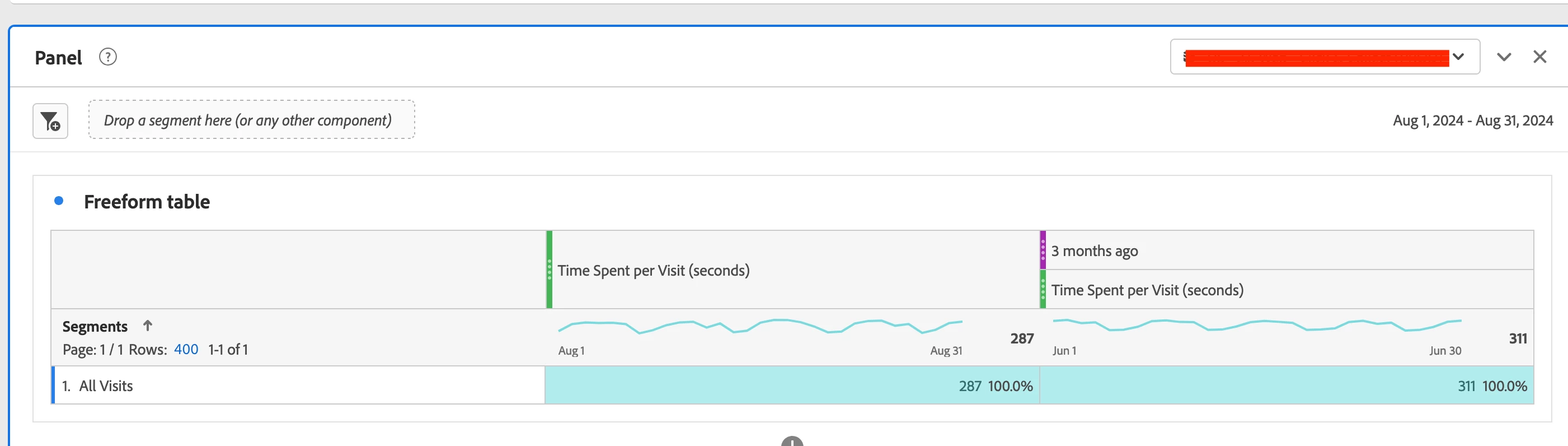 I am looking at the time spend per visit (seconds) metric last month and compare it with two months before. When I add the date range to the next column, the data in the first column change.