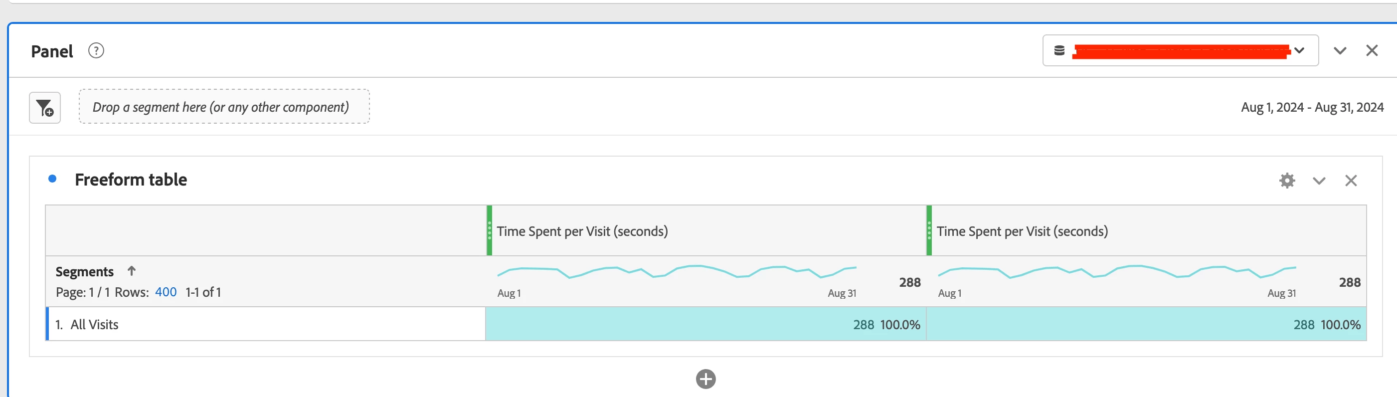 Data in the first column change when I add a date range to the second column [Time Spent per Visit (seconds)]