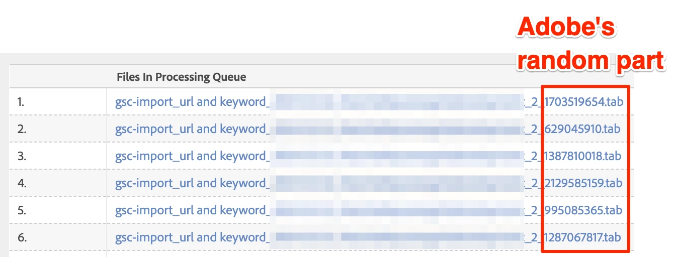 - alternatively, a way to filter the job names? There is a "filters" I can set with a "name" array, but it seems like you will have to know the exact name of the import job, that includes a random part that Adobe is adding to the file name that they create during the processing which defeats the purpose of a filter and is absolute nonsense if you ask me. How can you apply a filter if you don't even know what to look for...?!