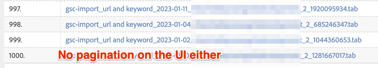 My client has a fairly big website with large numbers of entries per day (25k+) that requires breaking the import into multiple chunks per day (typically 3) which leaves me at 1000k import jobs so far.