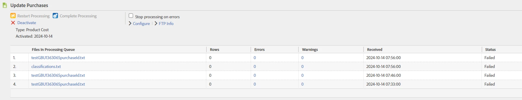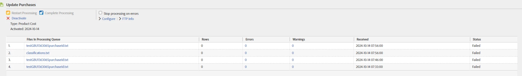 As far as I can tell, the date is in the correct format, the columns are separated by tabs, and it is a valid purchase ID from my site - is there something I'm missing that would cause a processing failure on this file? The data source is of the type Product Cost as this seemed the closest to what I wanted