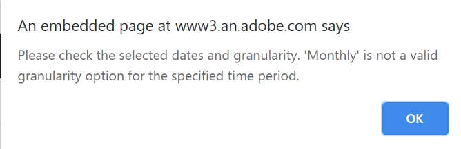 Monthly granularity seems only available if I select the reporting date to be either 'Last Month' or greater than 1 month.