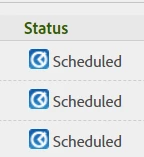 All of these items can be dragged and dropped into the order of your choice, and that order will stay that way until changed. You will also notice that all these items perpetually have "Scheduled" as their status: