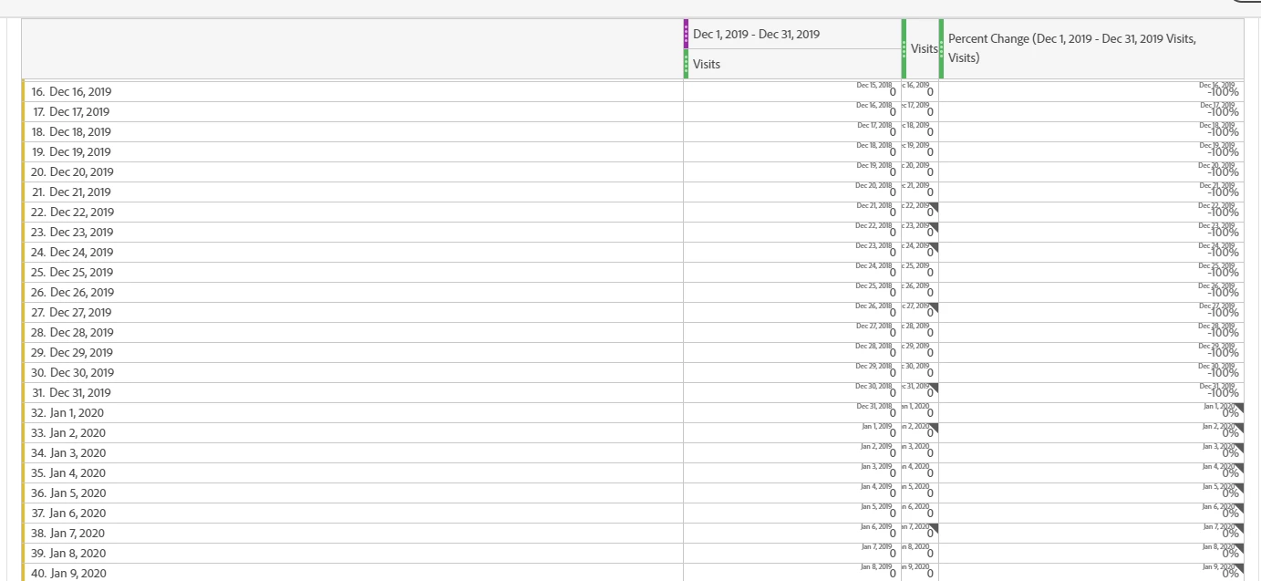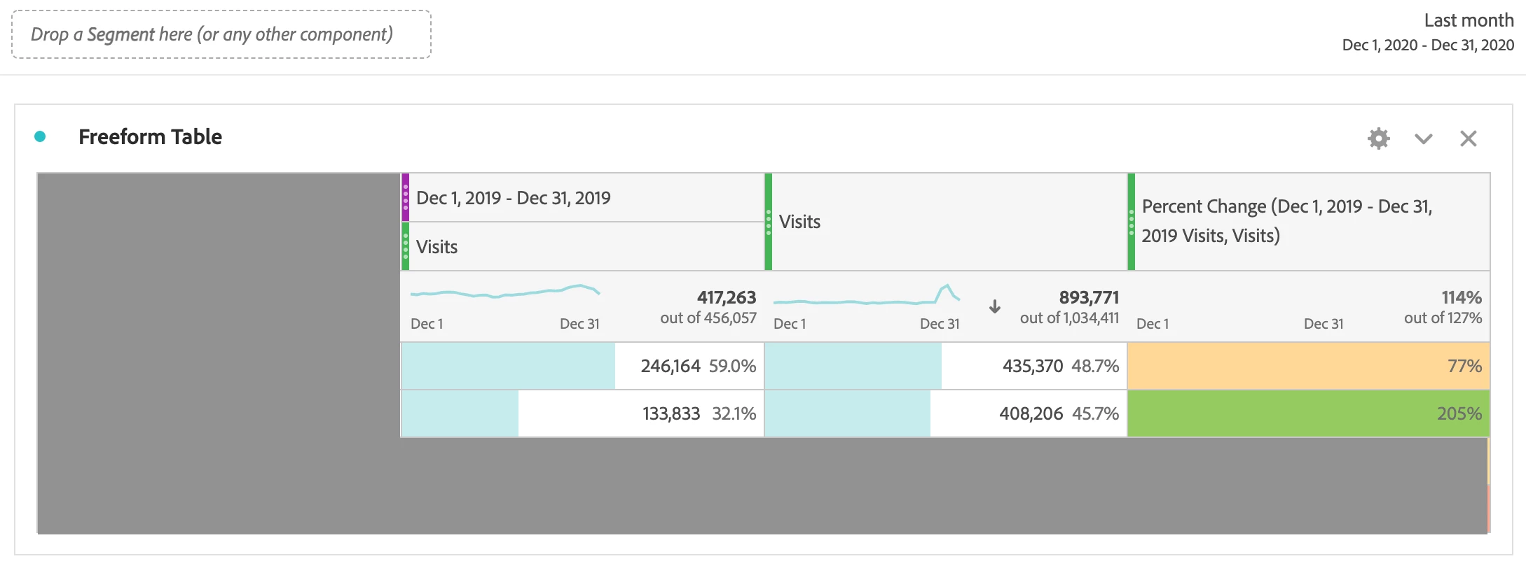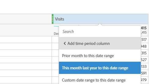 2)Right click on Visits and select "This month last year to this date range" - again works fine