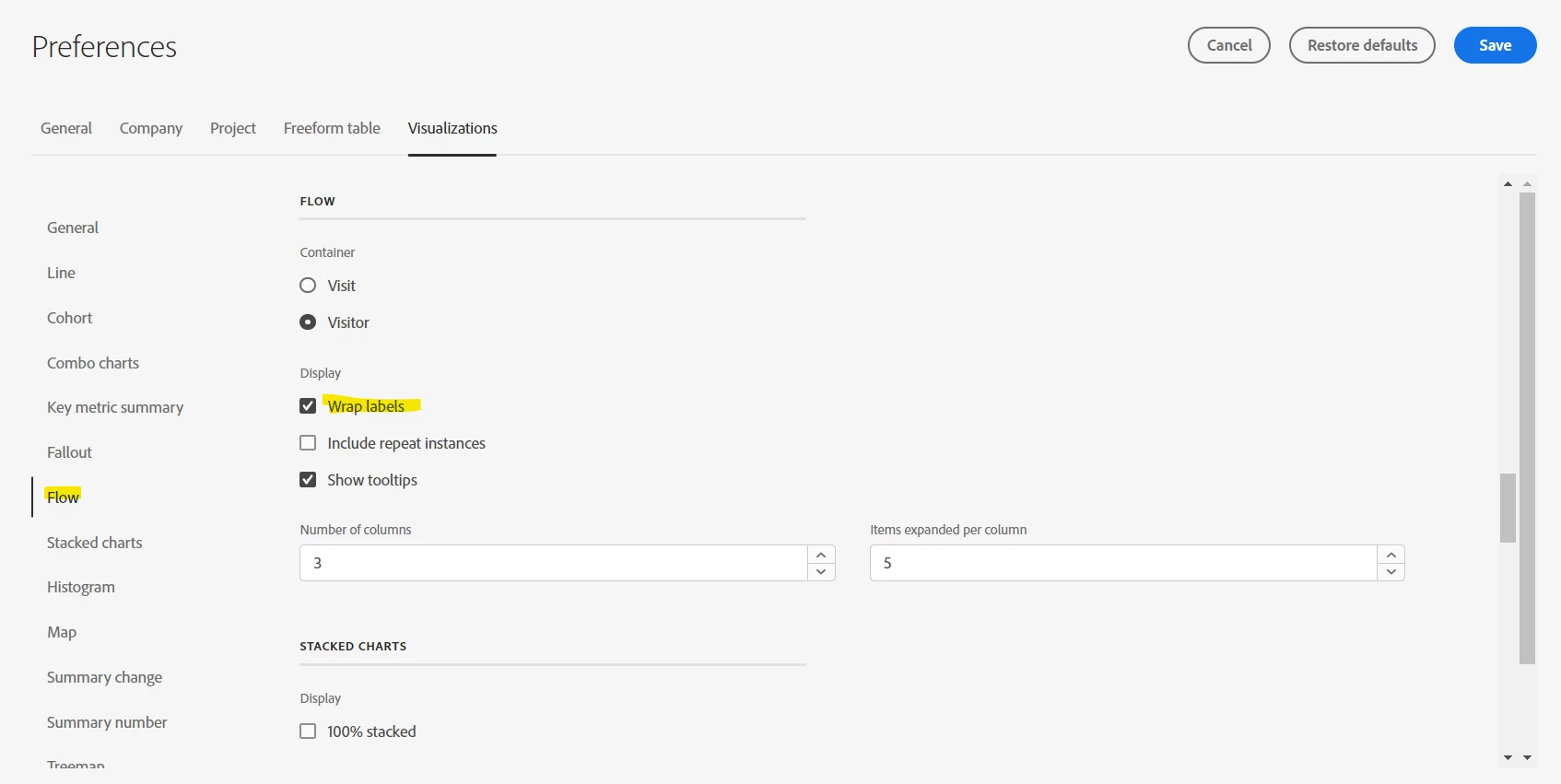 Why is this feature important to you - In the Flow visualization, If the wrap label selected on default, then i don't need to select manually every time i create a flow visualization to see the full name of the page.