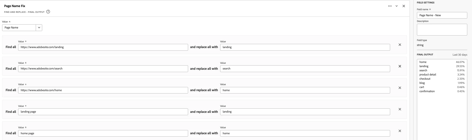 - Dimension Values Refinement: The Find & Replace functionality of derived fields is an incredibly useful tool that can help you easily and quickly deal with rogue or malformed values within a dimension. By using this feature, you can identify and replace problematic values that may be causing issues with data aggregation or that are otherwise causing problems, ensuring that your data is accurate and symmetrical across all value variations. Additionally, the Find & Replace functionality can help streamline your data analysis processes, saving you time and effort while ensuring that you're making informed decisions based on accurate and reliable data. With this feature, you can be confident in the quality and accuracy of your data, allowing you to focus on generating insights and driving better business outcomes.