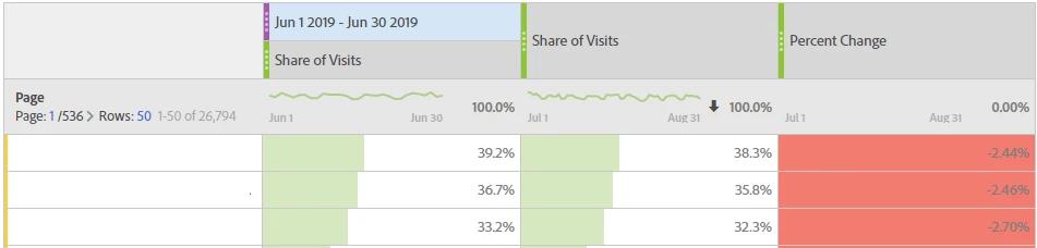 When calculating as a percentage change, or as one minus the other I am getting stupid numbers. Using a Summary Change Visualisation with Raw Difference gives me the right number but I can't seem to replicate in my table.