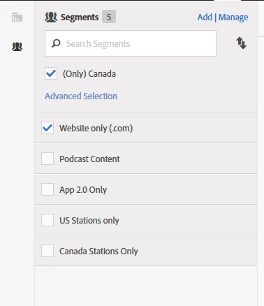 I tried to look for the segment Website only (.com) since we have both a website and an app; no result.