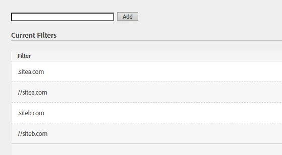 Internal URL Filter setup:
