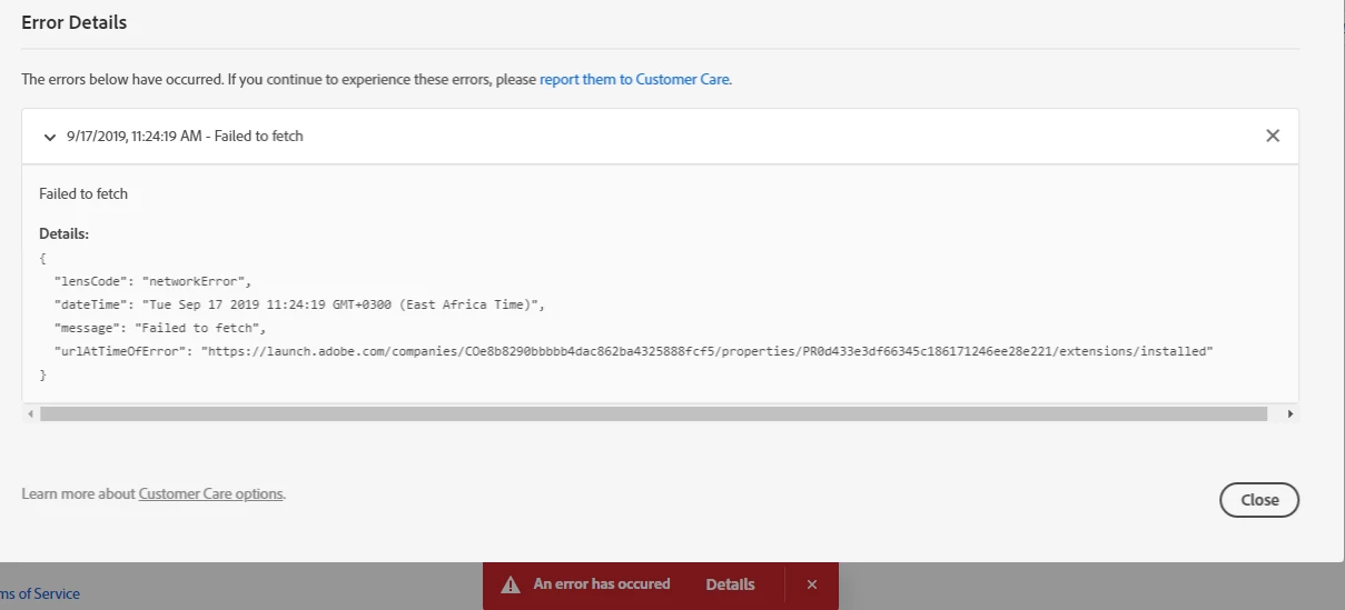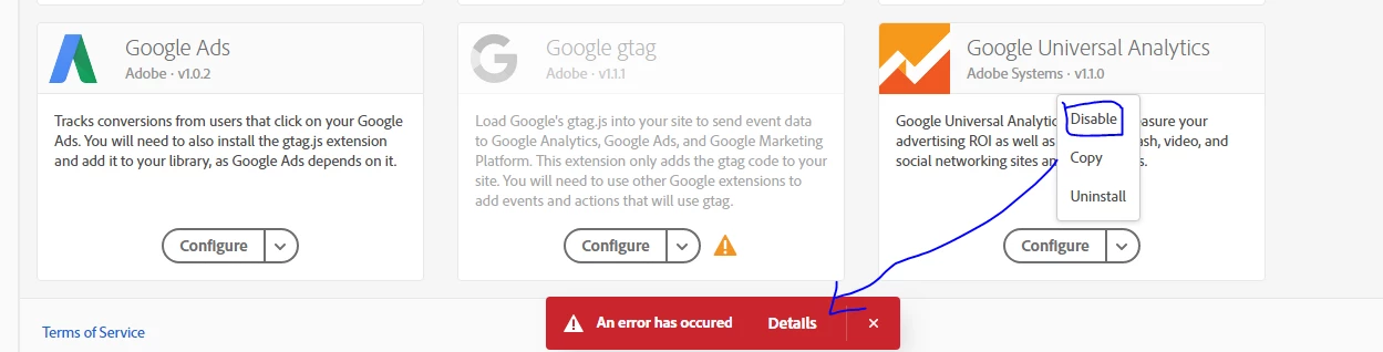 I wanted to disable Extension on an analytics property. but I get this error