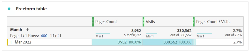 I would like to create a calculated metrics that returns row count of pages that account for x% of total visits. It seems the only way to get something working is through percentile which doesn't always return the exact percentage I want to have. Anyone been through the same or has a way to work it out?