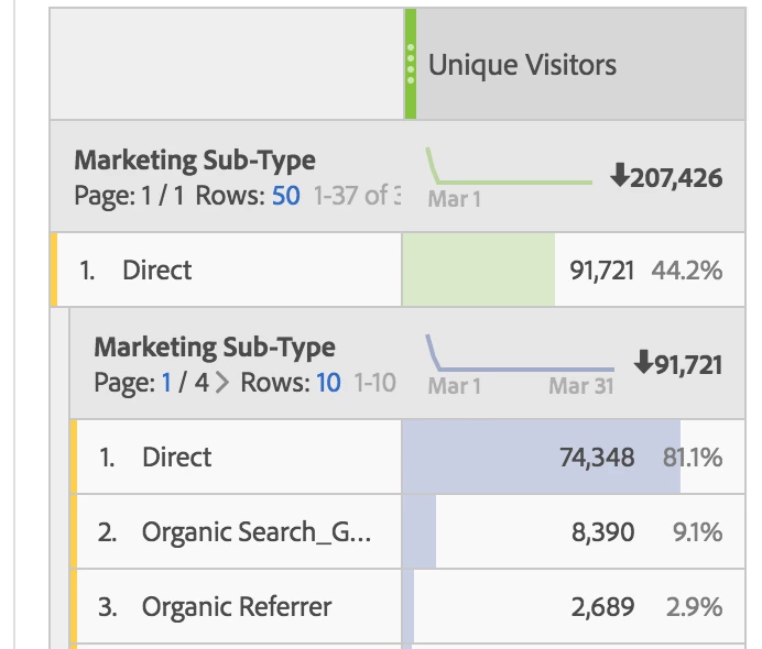 So then the question is... is this first touch "sub-type" being broken down by last touch "sub-type" or the other way around? It doesn't seem like there is any way to know once the dimension has been dragged into the report.