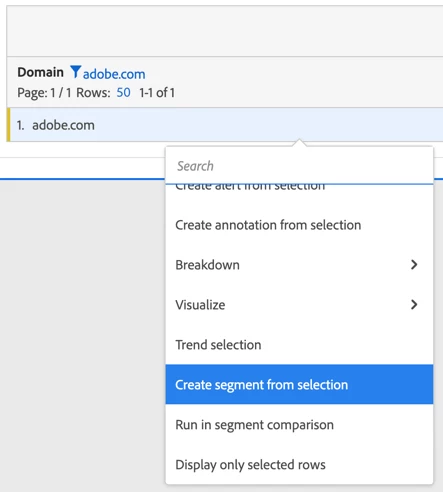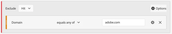 Example creating an exclude segment for adobe.com domain