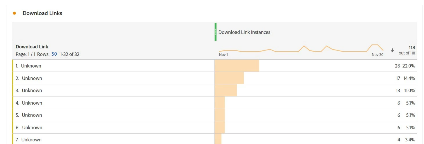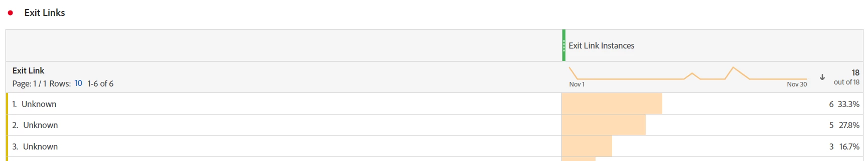 For me, it appears only Exit Links are impacted. The Unknowns started appearing around 30/10/2023 and appear to stop around 29/11/2023. Not all exit links are showing as Unknown during this period, but a significant number are. The issue appears to be primarily in Workspace.