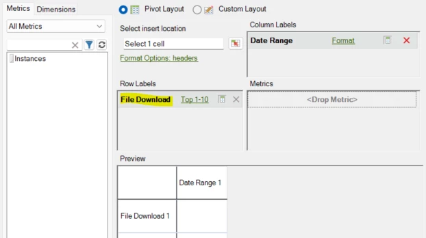 Download Link dimension in Report Builder Adobe Analytics