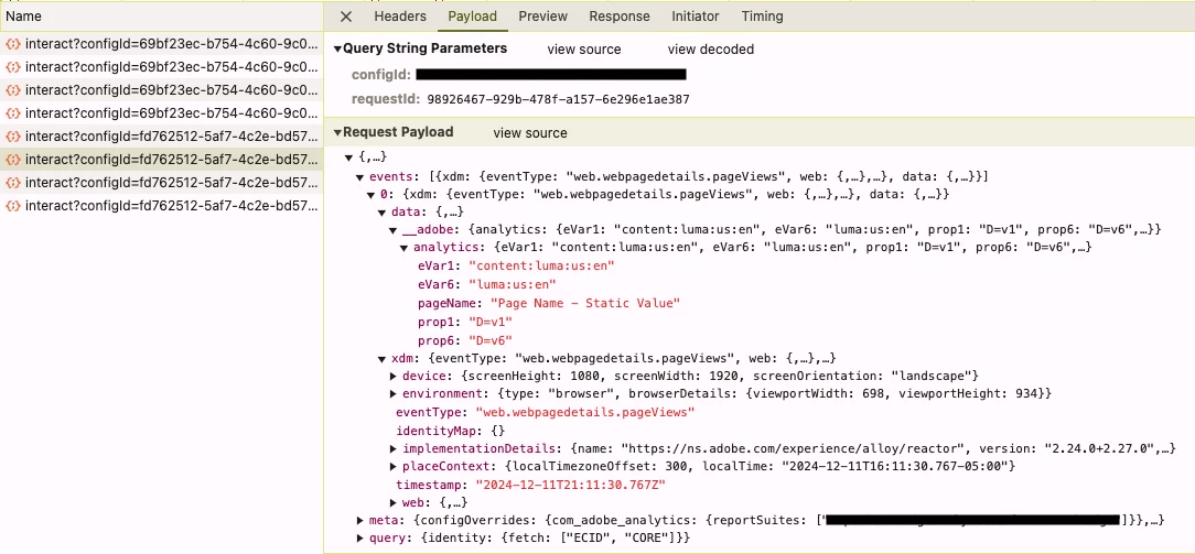 Keep in mind that if you aren’t setting the XDM variable in your Tags implementation, some automatically collected XDM values will still appear in the payload.